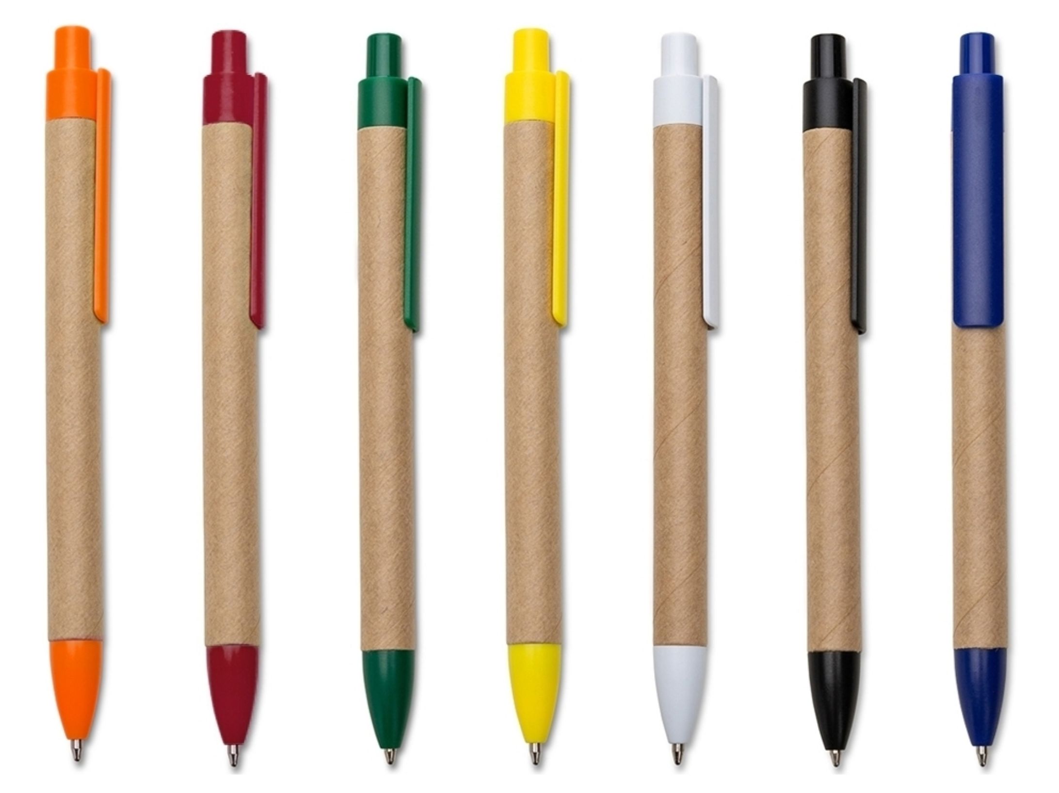 Caneta de Papelão com detalhes plásticos.
