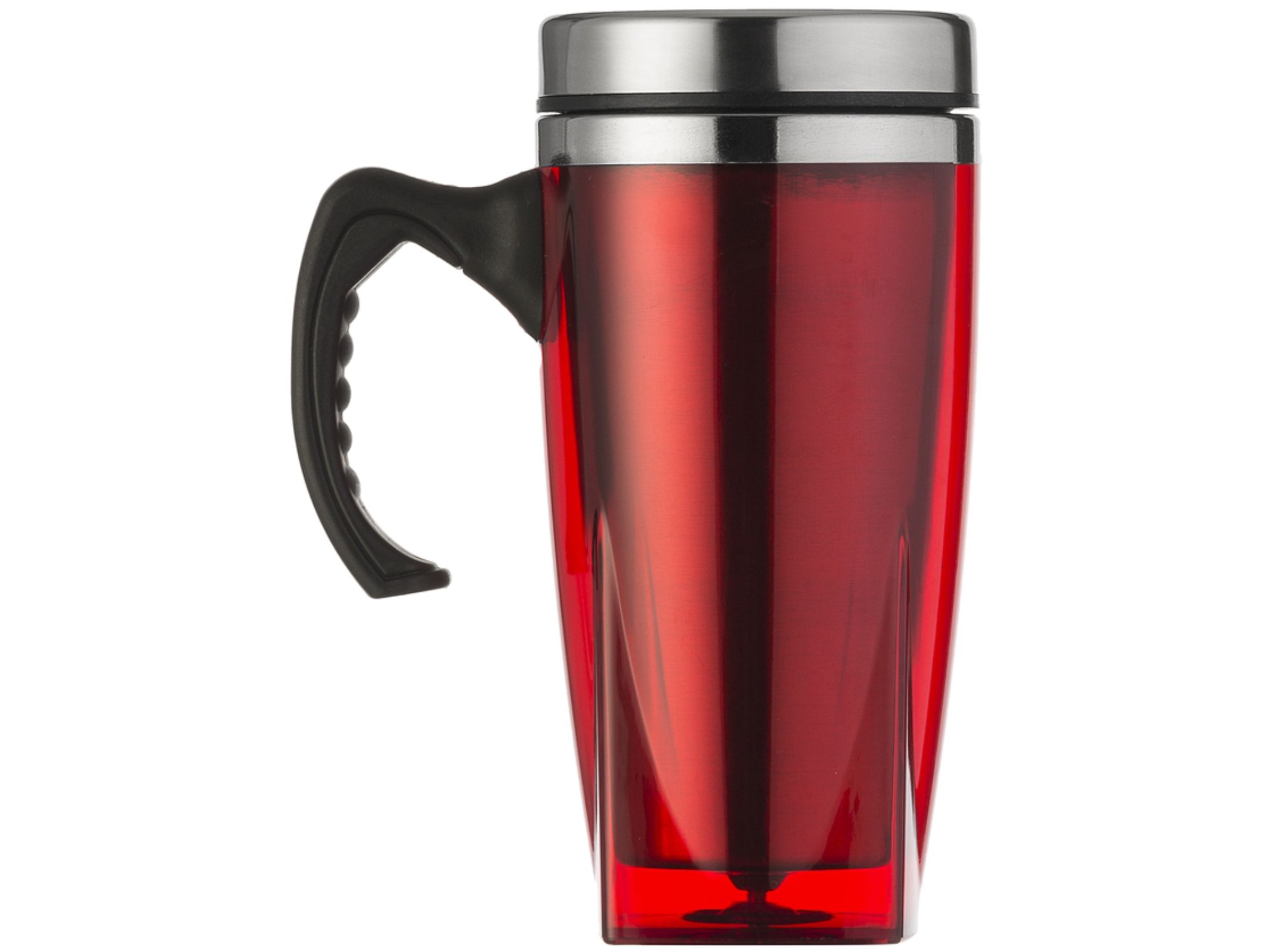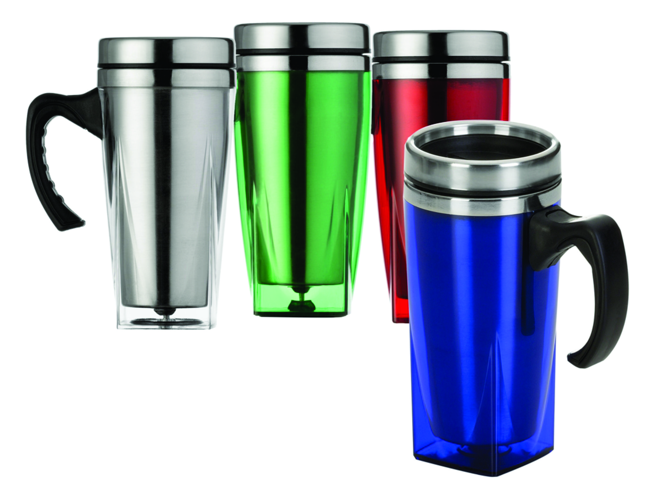 Caneca Inox acrílica 450 ml com fundo quadrangular com cabo plástico resistente,