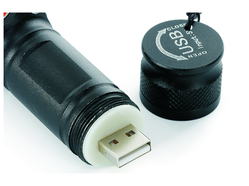 Lanterna Led recarregável com zoom de regulagem e três estágios de iluminação,