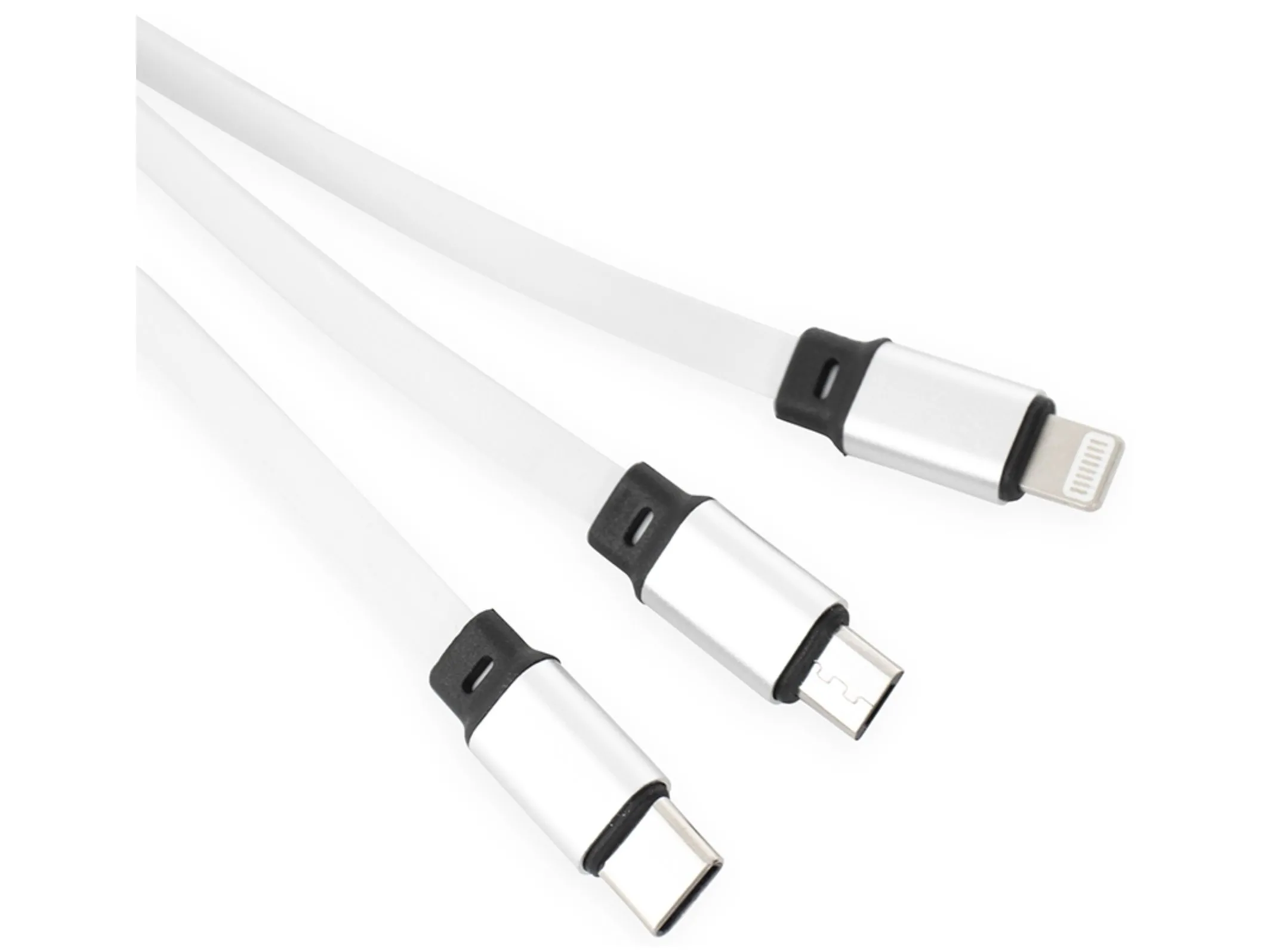 Cabo USB Retrátil com as entradas Lightning/iPhone, V8/Android e Tipo-C/Android.