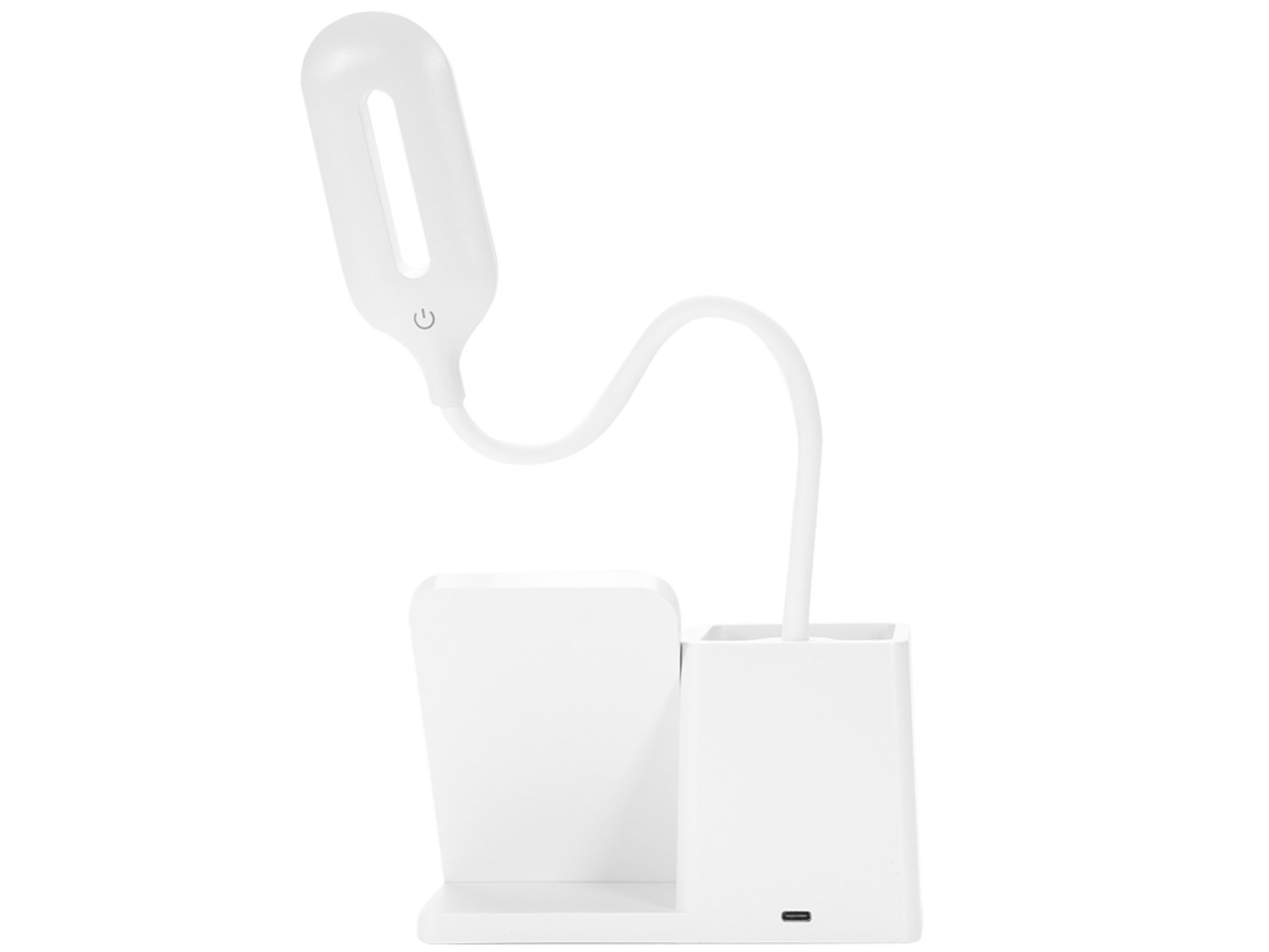 A luminária LED com 3 estágios de iluminação. Feita em plástico com base antideslizante e haste articulável, ela oferece três opções de luz com ajuste de intensidade: 10 LEDs em luz quente, 10 LEDs em luz fria e 20 LEDs com luz mista, Sua base possui uma área vertical para carregamento via indução, além de um porta-caneta. Para garantir a iluminação e o carregamento, basta conectar o produto a uma fonte de energia, pois ele não armazena bateria. Acompanha cabo USB Tipo-C.