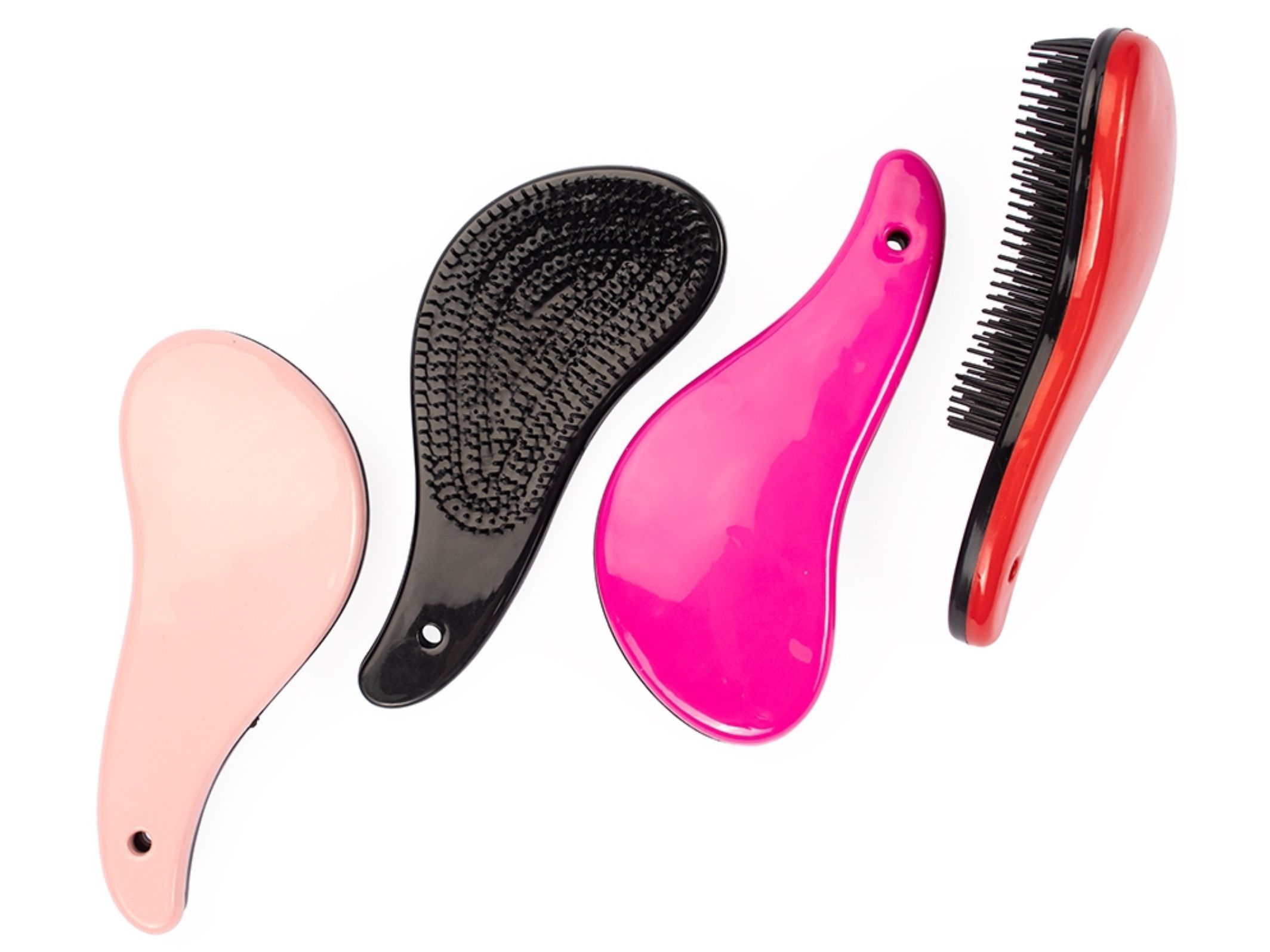 Escova com design compacto e ergonômico. Feita inteiramente em plástico, conta com cerdas flexíveis são posicionadas em dois níveis diferentes.