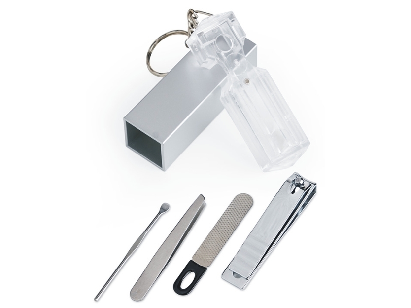 Chaveiro kit manicure 4 peças em estojo plástico.