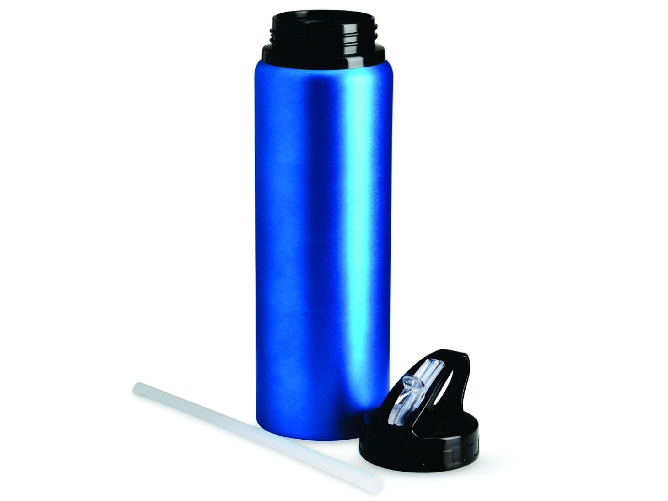 Squeeze de Alumínio, tampa plástica com bico flip e canudo.