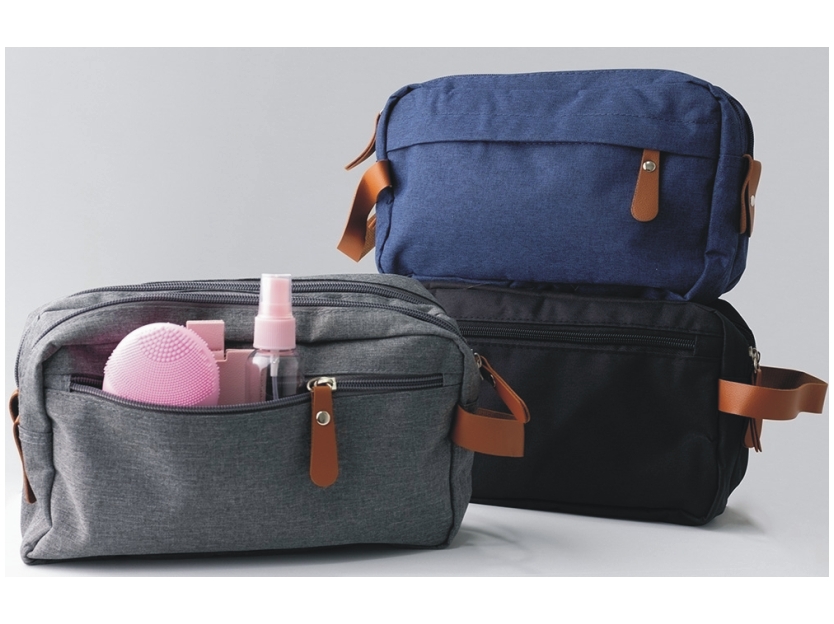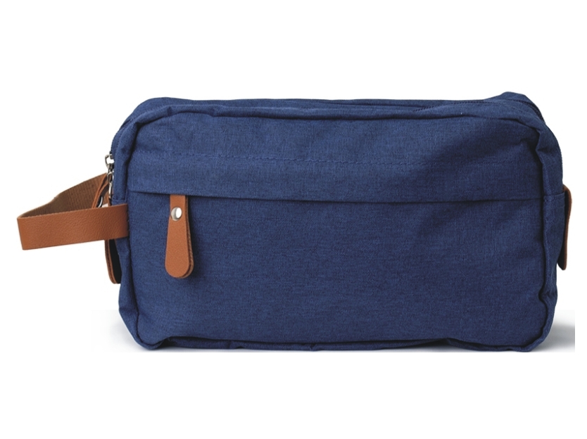 Nécessaire confeccionada em poliéster, com detalhes em couro sintético.