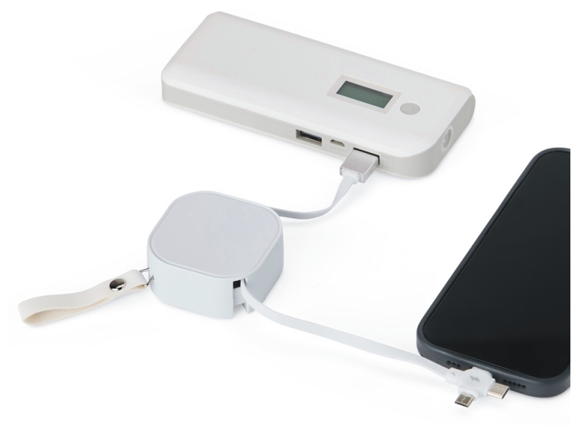 Contém entradas Lightning/iPhone, V8/Android, Tipo-C/Android e 4 diferentes ajustes do comprimentos dos cabos.