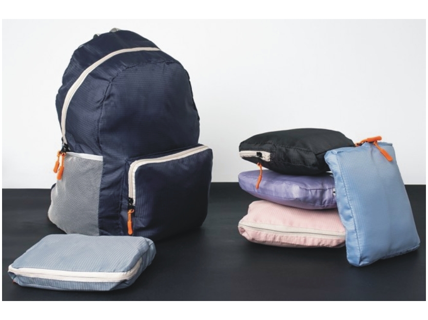 Feita em nylon, ela se transforma em um estojo compacto quando não está em uso.