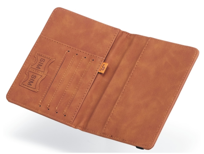 Conta com quatro compartimentos para cartões, três bolsos, sendo um exclusivo para passaporte e outros para dinheiro e documentos, dois espaços para cartões SIM e