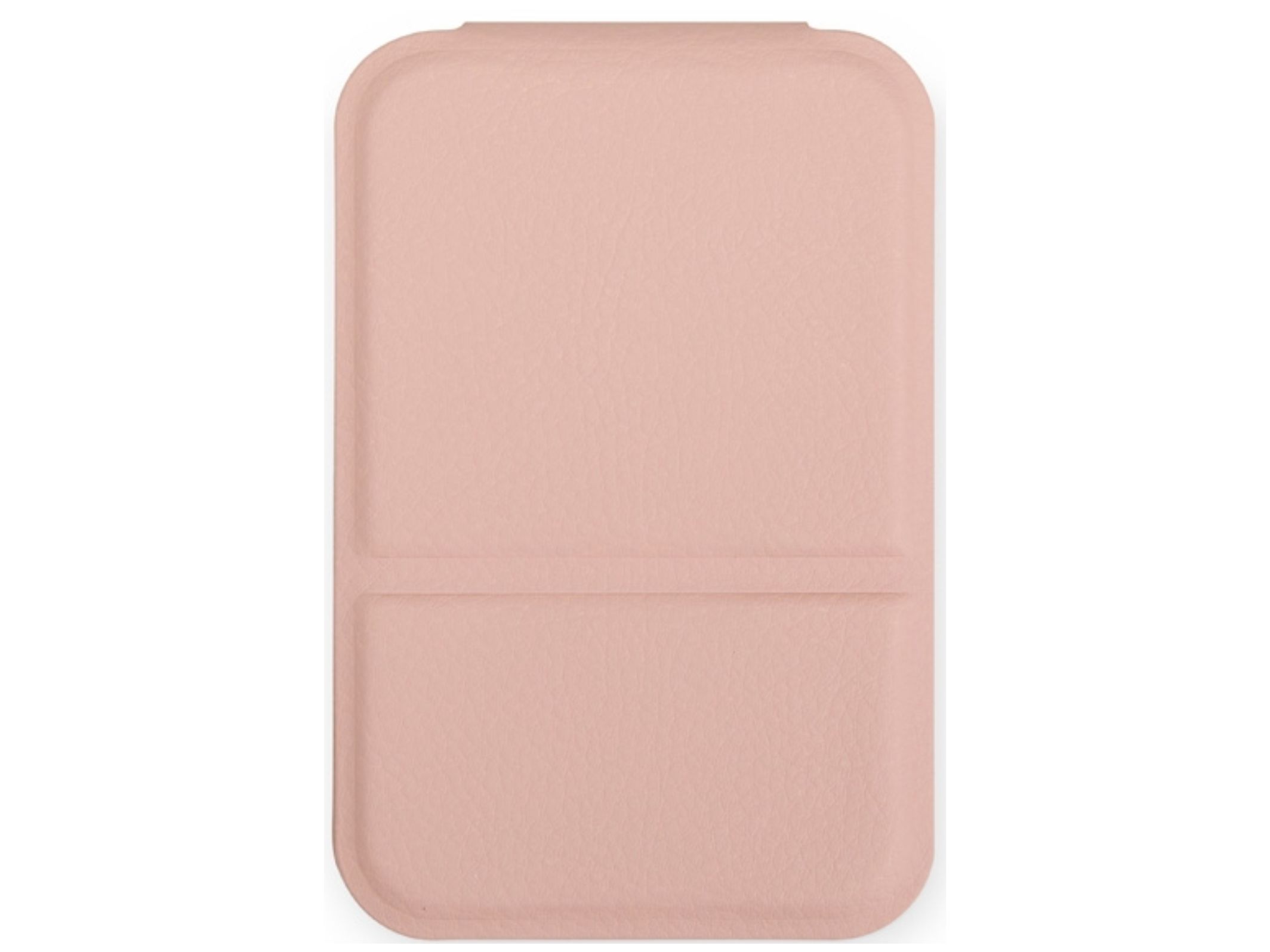 Espelho de bolsa em couro sintético flexível com leves ranhuras para ajustar em até três posições diferentes, tornando-o um item prático e compacto.
