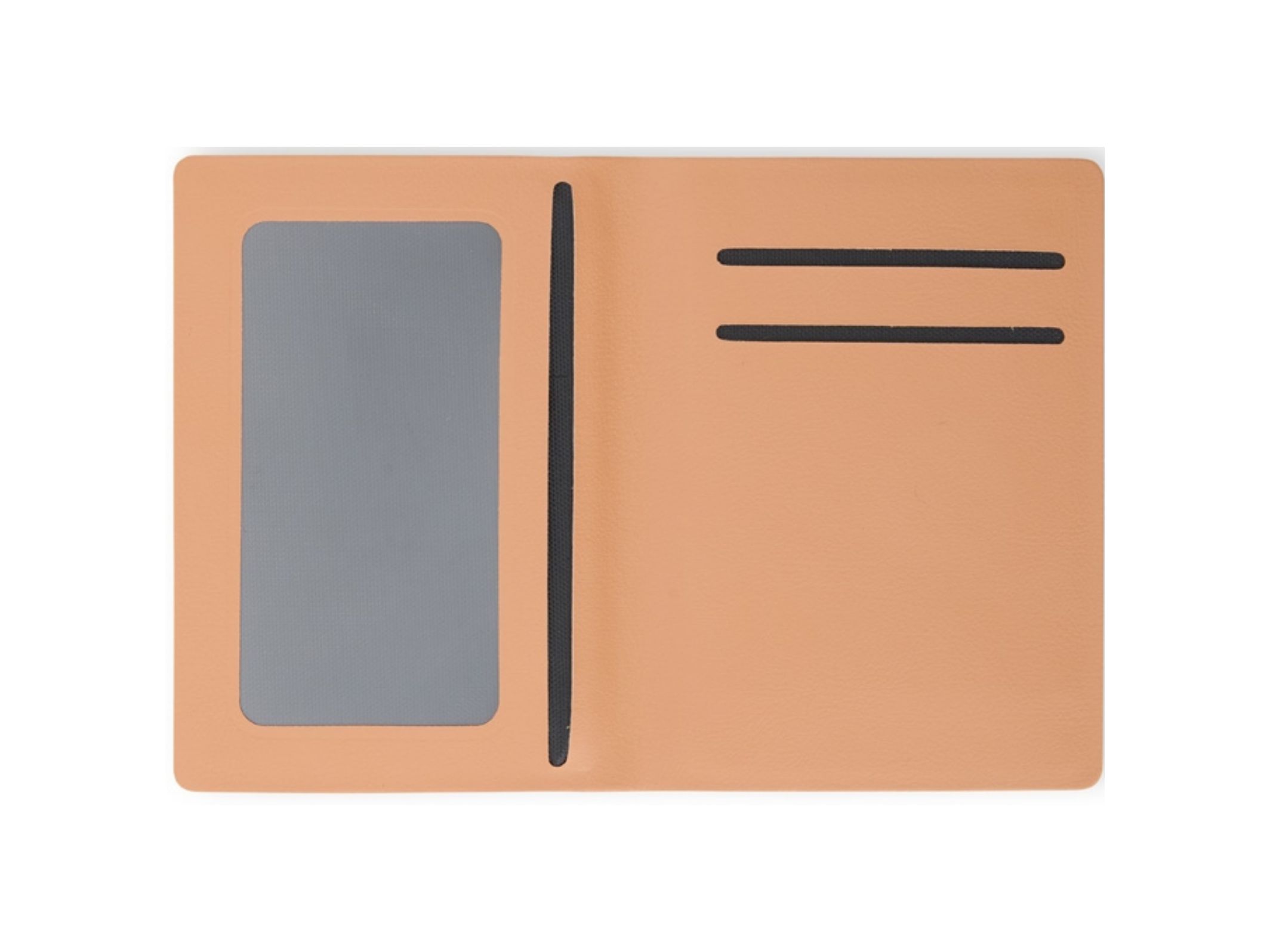 Possui três compartimentos, incluindo um com visor transparente.