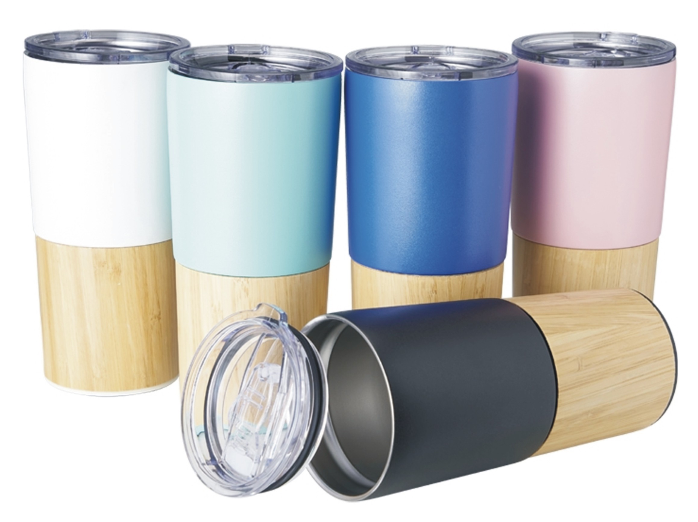 Copo Térmico de inox 600 ml com parede dupla e detalhe de bambu