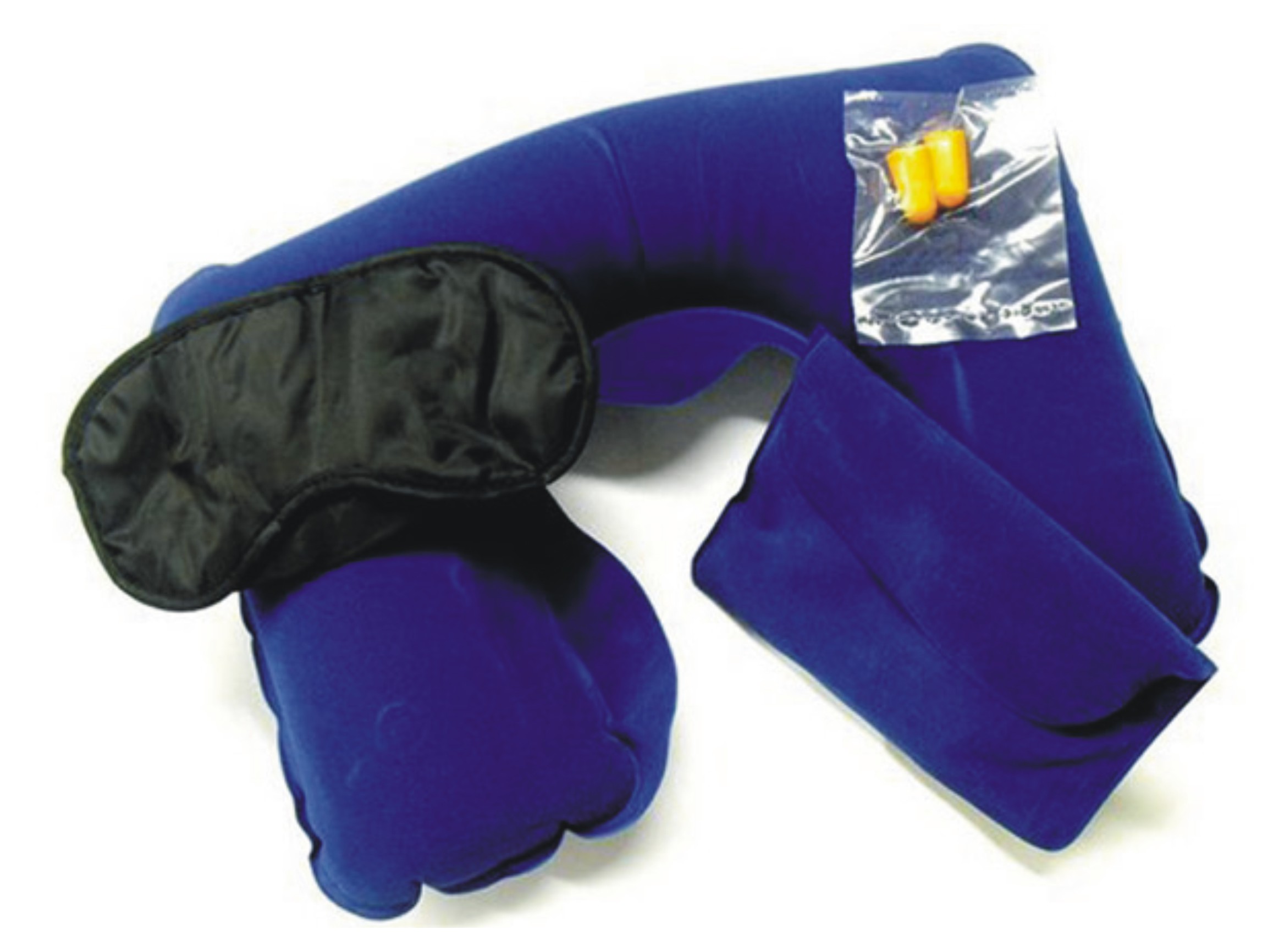 KIt Viagem com Travessseiro de Pescoço Inflável, Máscara de Dormir e Protetor Auricular