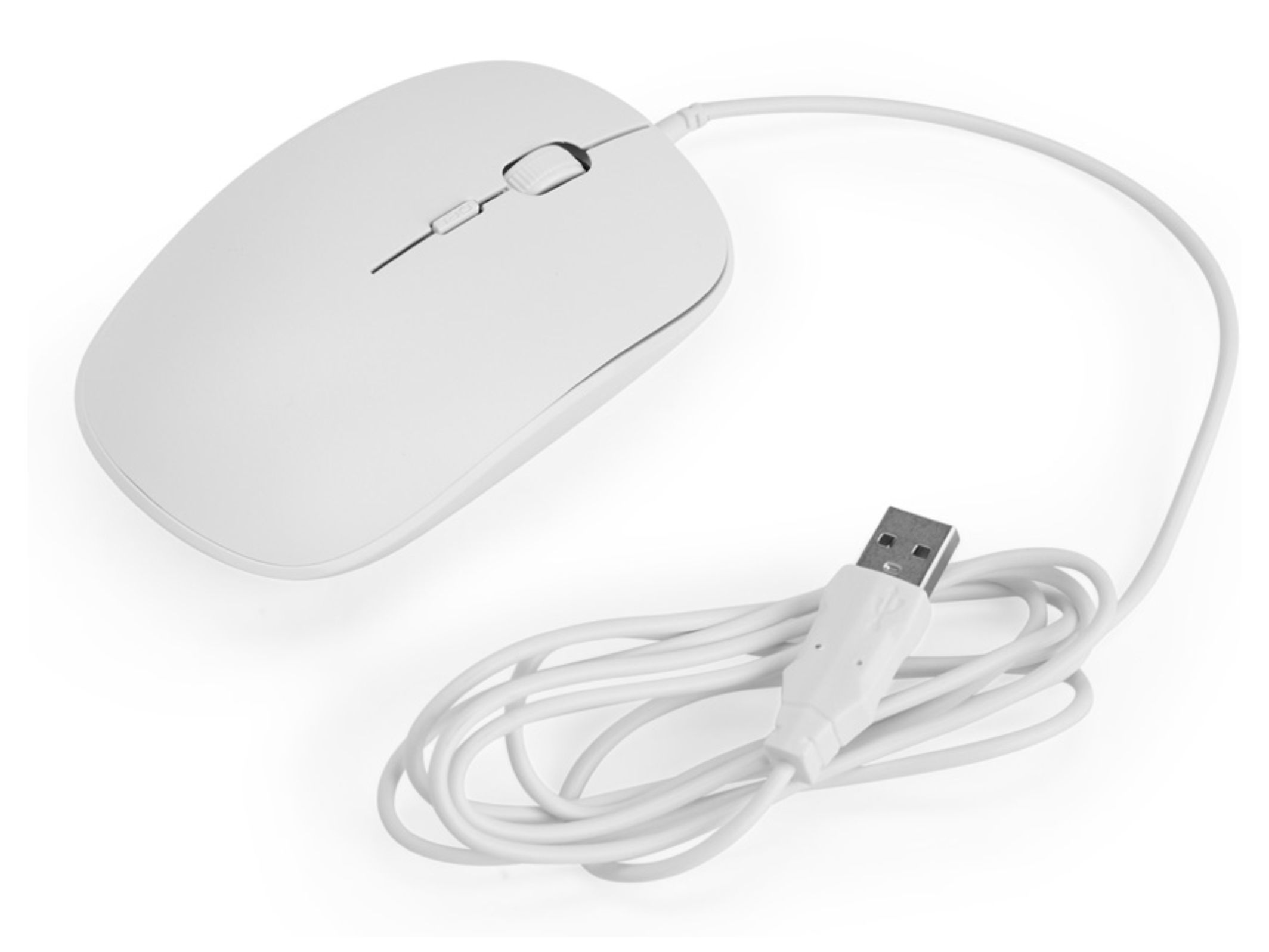 Mouse óptico com fio de 1,5 metro de extensão e botão DPI para ajuste de sensibilidade do periférico.